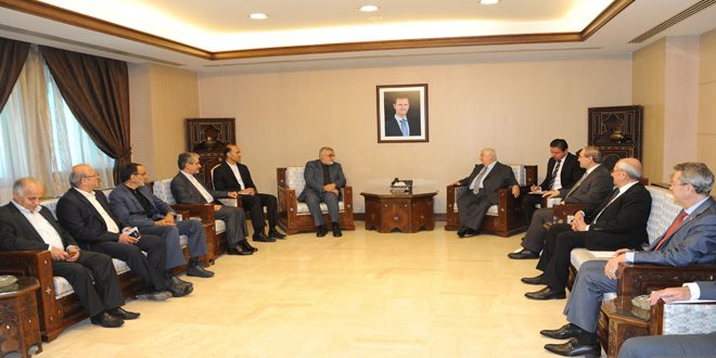 DAMASCUS, (ST)-Joint Syrian-Iranian efforts to fight takfiri terrorist organizations in addition to the latest developments at the regional and international arenas and bilateral ties were the main topics discussed during the meeting on Wednesday between Deputy Premier, Minister of Foreign Affairs and Expatriates Walid al-Moallem and the Chairman of the Committee for Foreign Policy and National Security at the Iranian Shoura Council Alaeddin Boroujerdi.