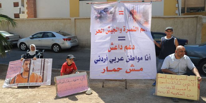 The family members carried pictures of Jordanian pilot Mu’az al-Kasasbeh, who was burned alive by ISIS terrorist organization, in addition to banners with phrases saying “Stop Supporting Terrorism in Syria” and calling on the Jordanian parliament members to hold terrorism supporters in the Jordanian government accountable.