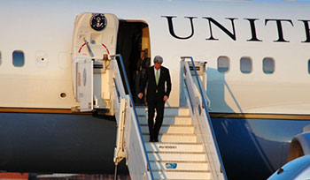 According to Voice of Russia, AFP,Kerry flew into London on Sunday from Kabul, at the end of a 10-day trip around Asia.