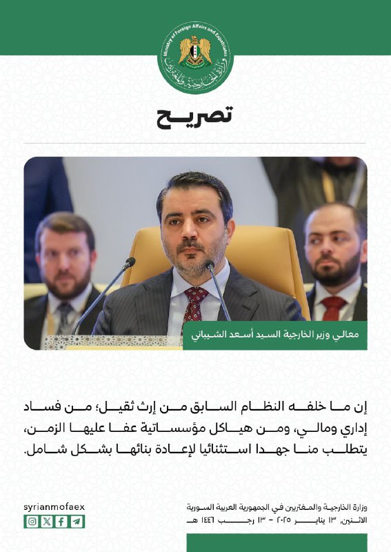 In the new Syrian administration, we consider that the broad participation of all segments of society in political and social life represents a constitutional right for every Syrian. We call upon everyone to actively participate in building the future of Syria