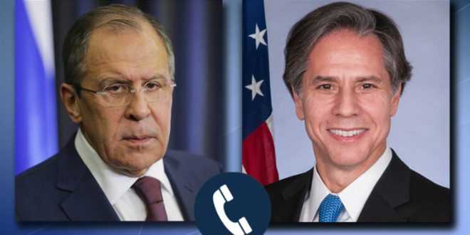 Moscow (ST): Russian Foreign Minister Sergey Lavrov reviewed in a phone call with his American counterpart Anthony Blinken a political solution to the crisis in Syria and the situation in Libya and Ukraine.
