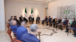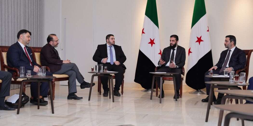 Leader Al-Sharaa met a delegation from the Syrian community in the U.S. Domestic Newsfeature On Jan 11, 2025 Share DAMASCUS, JAN.11, (ST)-Yesterday, the leader of the new Syrian administration, Ahmad Al-Sharaa, and Minister of Foreign Affairs and Expatriates As’ad Al-Shibani met a delegation representing the Syrian community in America. #Syria_times Share FacebookTwitterWhatsAppEmail
