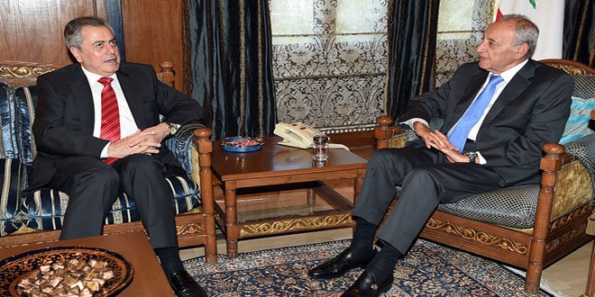 BEIRUT,(ST)_The Lebanese Parliament Speaker Nabih Berri and the Syrian Ambassador in Beirut Ali Abdel-Krim have discussed the latest developments in the region.