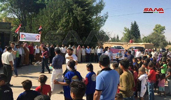 HASAKA, (ST)- Locals in al-Damkheyya village in Qamishli southwestern countryside gathered in the village’s square to call for the expulsion of the American and Turkish occupation from the Syrian territories.