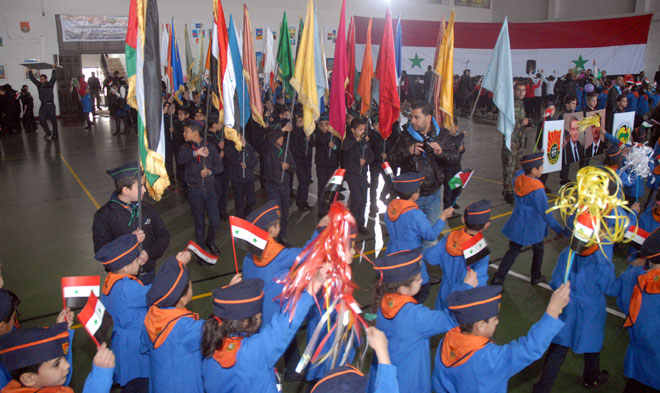 The schools’ principal Mrs. Shahera Falloh was quoted by the official news agency (SANA) as saying that souls of martyrs and blood of wounded soldiers pave the way for a better future for Syria.
