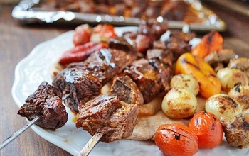 Shish Kabab, skewers of beef and vegetables, are the most interesting grilled meat recipe for Syrians. Although it is easy to make, it needs to be done just right. Here is a foolproof recipe with tips and step-by-step details to get the perfectly cooked vegetables and meat every time.
