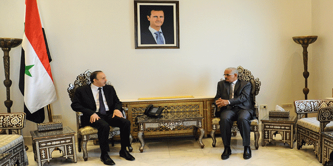DAMASCUS, (ST)- Speaker of the People’s Assembly Mohammad Jihad al-Lahham  on Tuesday received leader of the Mauritanian Ravah (welfare) Party Mohamed Ould Vall and discussed with him the role of Arab parties and movements in increasing the nationalist pan-Arab awareness in the service of the central Arab cause (the Palestinian cause) and of solid inter-Arab relations.