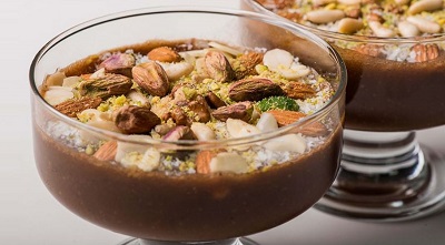 This dessert is most popularly served to celebrate the birth of a new child in a family. When family and friends come over to see the new child, this pudding is served in individual bowls topped with a variety of nuts and shredded coconut. It is also said that the brown color of the spiced pudding is symbolic for the richness of soil, while the rough texture of the nuts on top represents growing seeds.