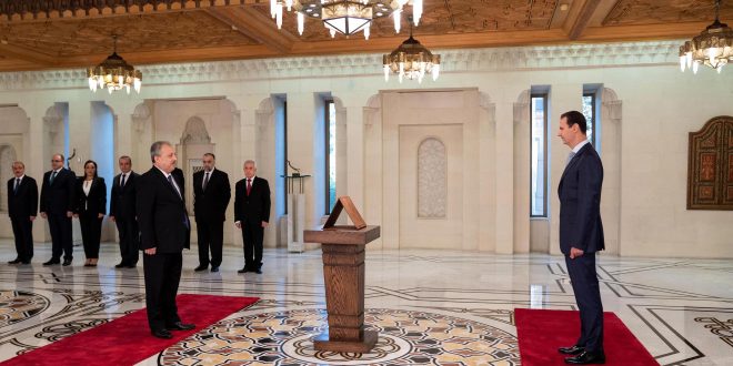 Members of the new Syrian government, led by Prime Minister, Eng. Hussein Arnous, were sworn in on Saturday before President Bashar Al-Assad.