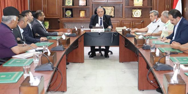 The Minister of Agriculture and Agricultural Reform Mohammad Hassan Qatana met with a number of Iraqi and Syrian participants in the International Flower Show.