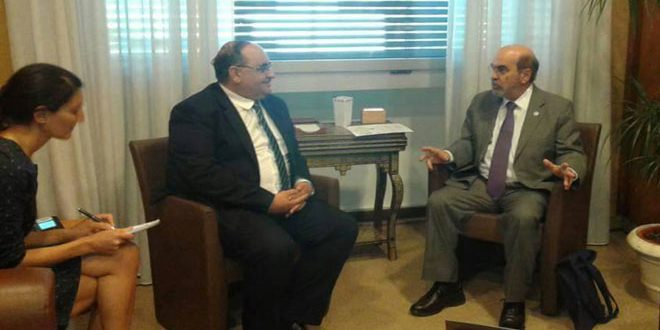 Rome, (ST) – On the sidelines of the 40th Conference in Rome, the Minister of Agriculture and Agrarian Reform Ahmed Al-Qadri discussed on Friday with the Director-General of the Food and Agriculture Organization of the United Nations (FAO) Jose da Silvia the reality of joint cooperation and means of development between Syria and FAO.