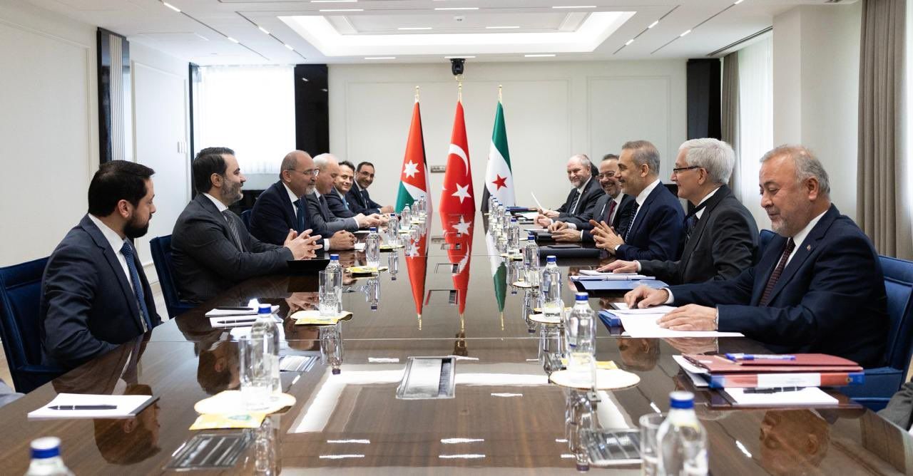 A tripartite meeting between the foreign ministers of Syria, Turkey, and Jordan begans in Ankara Domestic Newsfeature On May 12, 2025 Share Minister of Foreign Affairs and Expatriates Asaad Al-Shibani is currently holding a trilateral meeting with Turkish Foreign Minister Hakan Fidan and Jordanian Foreign Minister Ayman Safadi in Ankara. Souha Suleiman Share FacebookTwitterWhatsAppEmail
