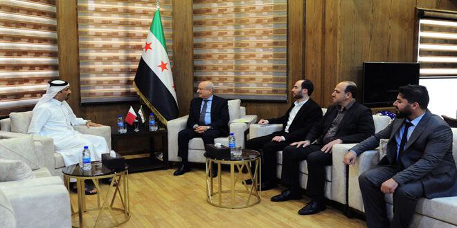 Minister of Transport Dr. Yaarab Badr met with the Charge d’Affaires of the Qatari Embassy in Damascus, Khalifa Abdullah Al-Mahmoud, to discuss ways of mutual cooperation between the two countries in the transport sector.