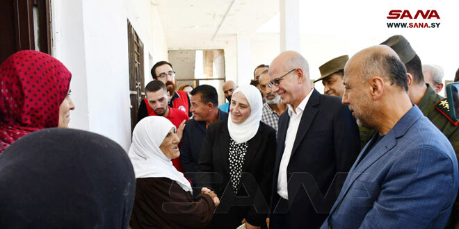 Homs, (ST) – Minister of Local Administration and Environment Eng. Louay Khreita and Minister of Social Affairs and Labor Eng. Samar al-Sabai inspected yesterday the Joseh border crossing and shelters in the town of Rablah in Homs, where Lebanese families arrived after being displaced as a result of the Israeli aggression.