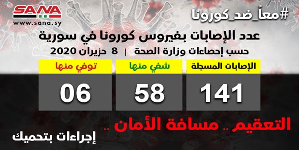 On June 4, the Ministry of Health announced that it had registered a case of coronavirus in Damascus countryside for a person working as a truck driver on the Syria-Jordan Route.
