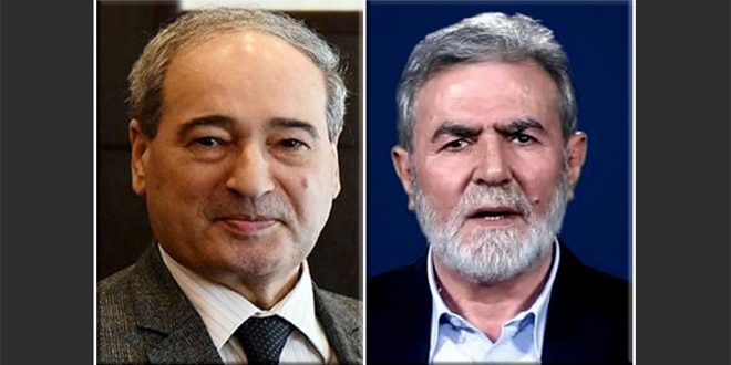 During a phone call made by the Secretary-General of the Palestinian Jihad Movement Ziad Nakhaleh with Minister Miqdad, in which Nakhaleh explained the situation on the Palestinian arena and the movement’s readiness to continue the struggle against the Zionist aggression.