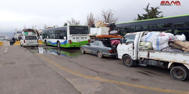 SANA reporters said that Syrian buses and trucks entered from al-Dabbousyia, al-Zamrani and Jdeidet Yabous border crossings, coming from the Lebanese territory, carrying hundreds of Syrian citizens, who, earlier, were forced to leave their homes in the countryside of Homs, Damascus and Hama due to the terrorist organizations’ inhuman acts.