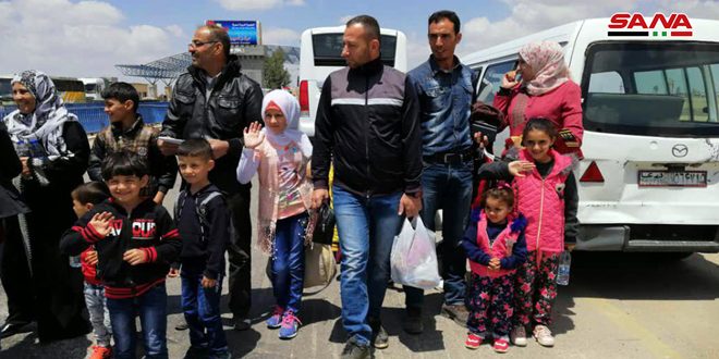 SANA reporter said that a new batch of displaced Syrians returned on Wednesday from al- Azraq camp in Jordan heading for their areas liberated by the Syrian Arab Army from terrorism after providing them with all the basic services.