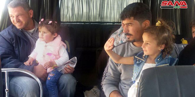 SANA reporter in Daraa said that Naseeb Jaber crossing witnessed on Tuesday the return of a new batch of displaced Syrians from al-Azraq refugee camp in Jordan to their original towns and villages which were liberated from terrorism by the Syrian Arab army.