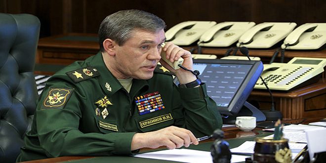 MOSCOW- Chief of the Russian General Staff Valery Gerasimov and Chairman of the US Joint Chiefs of Staff Joseph Dunford discussed the situation in Syria and the fight against terrorism during their telephone talks on Friday, the Russian Defense Ministry said, according to Sputnik.