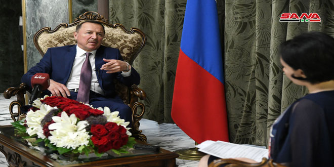 DAMASCUS- Russian Ambassador in Damascus Alexander Efimov has stressed that his country stands against attempts by some countries, which have lost the battlefield in Syria, to use all diplomatic and financial means to deny the Syrian people’s right to protect the sovereignty and territorial integrity of their country.