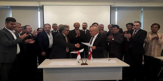 The signing of the memo was preceded by a session of talks between the two sides during which the head of the delegation of the Syrian Chambers of Commerce, Faisal Seif, underlined the importance of enhancing cooperation and trade exchange and inviting businessmen in Indonesia to participate in the reconstruction process witnessed by Syria.