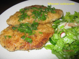 Heat oil in a skillet or pan to medium heat, fry chicken escalope for 4-5 minutes on each side until golden brown. ( depending of size of chicken breast).