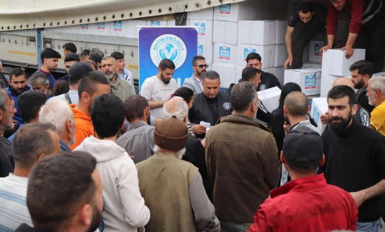 Under the supervision of the General Secretariat of Tartous Governorate, the “Muslims Around the World” organization distributed 1,500 food baskets to a number of villages in eastern Tartous countryside. Among the targeted villages are Basmaqa, Bayla, Bamalka, Al-Awainiya, Al-Jaras, Hababa, Bayt Al-Jahni, Hamin, Shabat, Al-Wasatat, Marashdin, Al-Bakriya, Badriya, and Al-Qatlab.