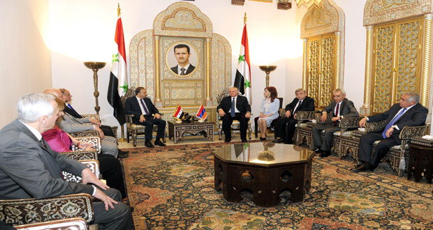 DAMASCUS, (ST)-The political developments in Syria and the region in addition to the organized international terrorism the Syrian people are facing were the main topics discussed by Speaker of the People’s Assembly Mohammad Jihad al-Lahham and visiting Armenian Foreign Minister Edward Nalbandian during their meeting on Wednesday.