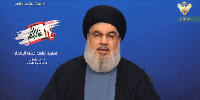 Speaking in a televised speech on Friday marking the 14th anniversary of resistance victory in July war with the Israeli enemy, Nasrallah also thanked Syria, as a state, government and people, for hosting displaced Lebanese citizens during the war.