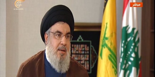 “Those who participated in the global war on Syria have realized that this is the end of the road and that they will not be able to do anything more than what they did during the past years at both the military and political levels,” said Nasrallah in an interview with “Al-Mayadeen TV” on Monday.
