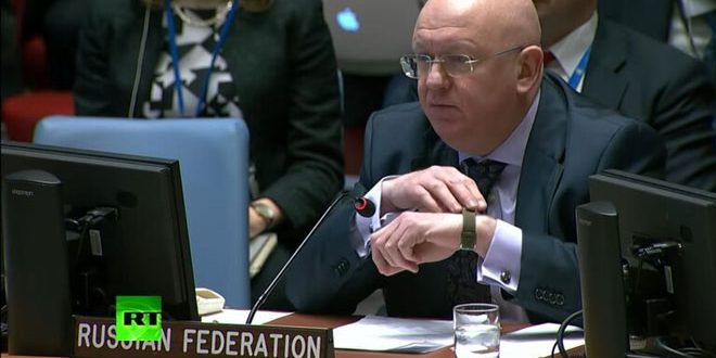 New York (ST): Russia’s permanent representative to the United Nations, Vasily Nebenzia, reiterated his country’s condemnation of the continuous Israeli aggression on Syrian lands, stressing Syria’s unity and sovereignty and the need to end illegal foreign presence on its lands.