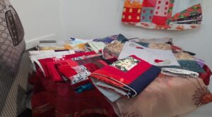 “I present a table cloth which took two weeks of working using old fabrics and all the participants joined in making this artistic work ”.
