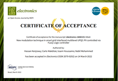 Prof. Carlo Makdisie, the supervisor of this thesis, said, “In this research, various cases of disturbances and faults (more than 7 studied cases) that could occur were studied, and solutions were found for them depending on the proposed system. Since it was necessary to confirm the research ideas through publication in reputable international journals, we communicated with Dr. Nabil Mohammed, who works at the Australian University of Monash, Which is considered one of the top 100 universities in the world. We started, with the help of Dr. Muhammad to implement the steps of the submitted research paper to be published in a prestigious international journal. We presented the paper under the title, “New Modulation Technique In Smart Grid Interfaced Multilevel UPQC–PV Controlled Via Fuzzy Logic Controller” to be published in the Swiss MDPI Series where we went through four rounds of serious arbitration.”
