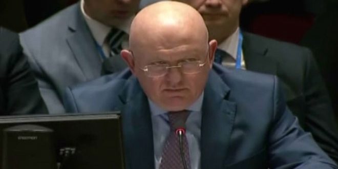 NEW YORK- Russia is deeply concerned by the fact that some capitals, Washington as well as London and Paris, which are “blindly following” their US allies, have engaged “in a confrontational policy against Russia and Syria without any justification,” The Russian Ambassador to the UN, Vassily Nebenzia, said during an emergency UN Security Council meeting on security in the Middle East, in the wake of fabricated reports about an alleged chemical attack in the Syrian city of Douma, according to RT.