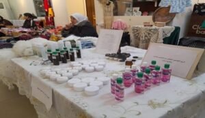 Another participant Eng. Haifa al-Shakfa exhibits natural cosmetic products such as creams and shampoos made from natural materials such as herbs and honey.