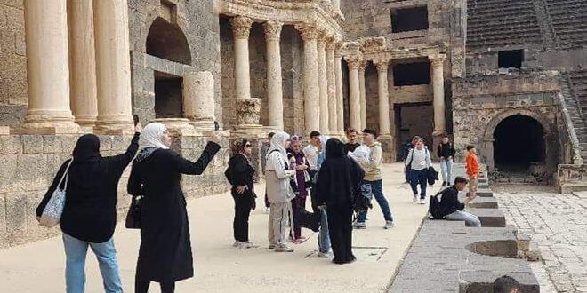 The archaeological city of Bosra al-Sham is witnessing a noticeable increase in the number of tourist delegations from various countries around the world, coming to visit its historical monuments in order to learn about its ancient civilizations.