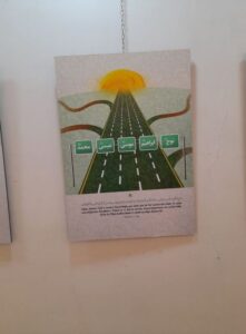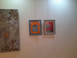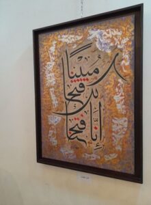 In turn, Adham Fadi Al-Jaafari displayed two Arabic calligraphic paintings : “ The first I introduced Al- Diwani letters while in the second I painted al- Thuluth letters with a classical frame and pure abstraction” .