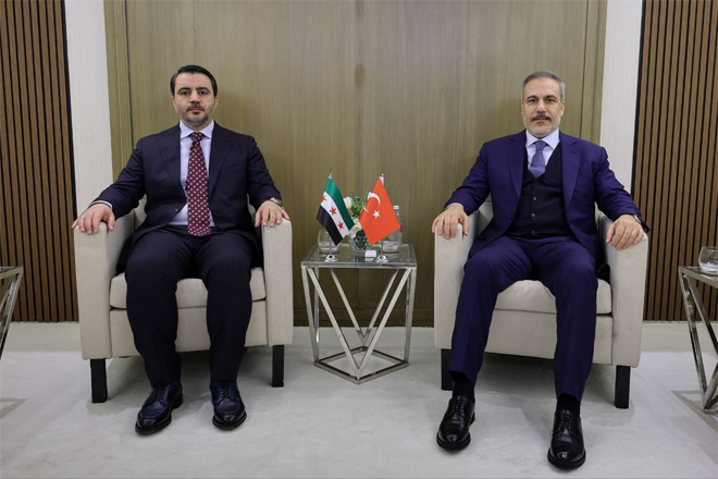 On the sidelines of the “Riyadh Meetings on Syria”, Sheibani meets his Turkish counterpart Domestic Newsfeature On Jan 12, 2025 Share The Minister of Foreign Affairs and Expatriates , Mr. Asaad Al-Shaibani, met with his Turkish counterpart, Mr. Hakan Fidan, on the sidelines of the “Riyadh Meetings on Syria” Share FacebookTwitterWhatsAppEmail