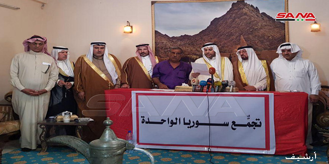 HASAKA, (ST)- The One Syria Gathering in Hasaka province condemned the crimes being committed by the US-backed Kurdish militia called Syrian Democratic Forces (SDF) against members of Arab tribes. Members of the Gathering also stressed the need to expel all the occupying forces from Syria.