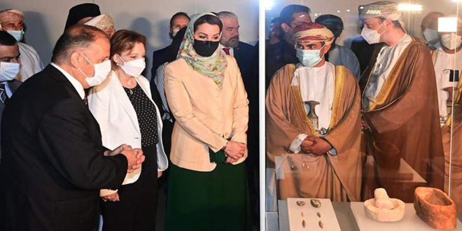 On May 21st, the Minister of Culture, Dr. Lubana Mushaweh, and the Deputy Chairman of the Board of Trustees of the Omani National Museum, Dr. Mona bint Fahd Al Said, inaugurated the exhibition (Syria, the Cradle of Civilizations) in Muscat.