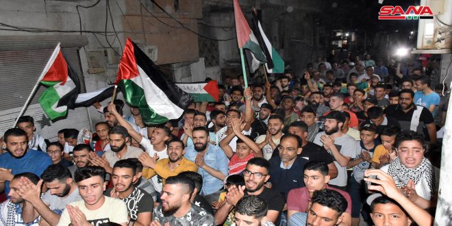 Hundreds of Palestinian citizens residing in “Al-Aydeen Camp” in the Syrian city of Hama took to the streets last night in a massive march to voice solidarity with their fellow citizens in Palestine who are facing a heinous Israeli aggression.