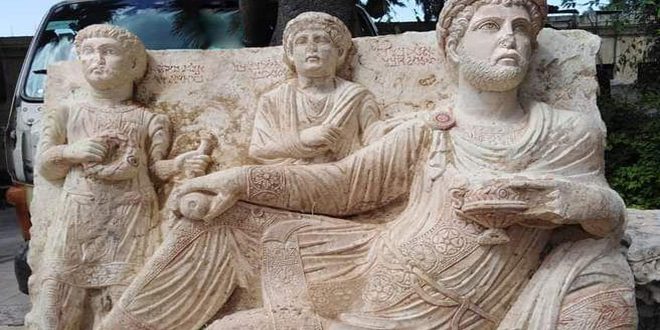 As for the most important archaeological discoveries in Palmyra in this regard, they are as al- Hariri explained the funeral scene of a reclining Tadmuri man, who is Elabel Bin Tema, with two other people standing next to him. The first is his son Elabel and the second is his servant. He indicates that this information revealed by the Palmyrian writing inscribed on the shoulder of each of them.
