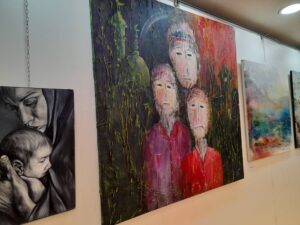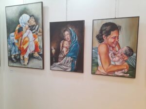 The exhibition displayed forty paintings for more than twenty artists from different governorates. The paintings reflected human topics for mothers and women inspired by reality in various artistic styles and techniques.