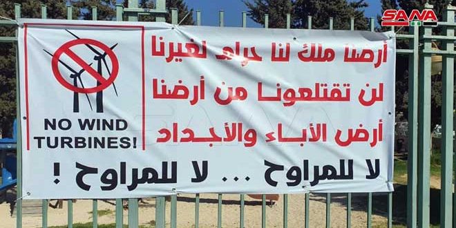 People in the occupied Syrian Golan have renewed their complete rejection of the Israeli occupation plan to build wind turbines on thousands of dunums of the Golan’s land. They have called on the international community, mainly the United Nations to stop this settlement building scheme that aims at displacing the Syrian citizens in a blatant violation of international legitimacy resolutions.