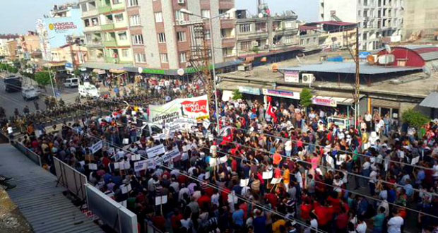 ANTAKIA, (ST)-Hundreds of people from the usurped Liwa Iskenderun have rallied in the “Sriniol” neighborhood of Antakia city to condemn the Turkish regime’s support for and training of the terrorists called by Erdogan as “Moderate opposition” in Syria, while the truth is that these terrorists have been committing massacres against the Syrian people.
