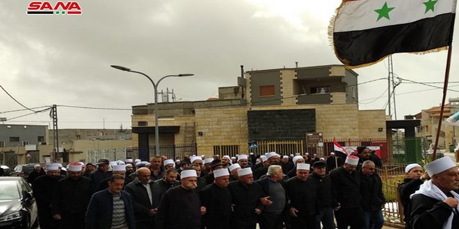 During a rally held in the occupied Baq’ata village, the people of Golan affirmed that Trump’s Declaration violates UN Charter and international resolutions on Golan, mainly No. 497 which considers Golan as an occupied Syrian land and stresses that all the Israeli occupation’s procedures regarding this Syrian land are null and void.