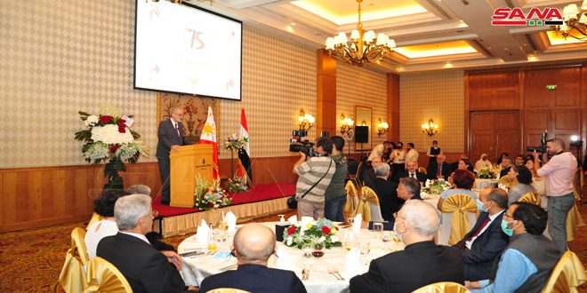 The Embassy of the Republic of the Philippines in Damascus held a reception on the occasion of the 75th anniversary of the establishment of diplomatic relations with Syria, at the Four Seasons Hotel in Damascus.