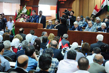 For his part, Head of the General Federation of the Trade Unions Mohammad Shaaban Azzoz called for preserving the achievements realized to the working class in order to reform the sabotaged infrastructure, adding that Syria needs the efforts of all of its people without foreign interference and on the basis of the political program to solve the crisis.