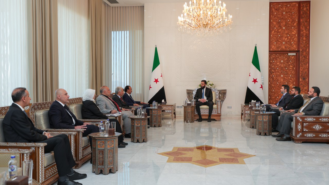President Ahmad al-Sharaa meets with members of the fact-finding committee, tasked with investigating into the Syrian Coast events, to review the latest developments.